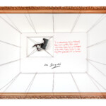 The surfaces of their works are altered to metaphorically show the erasure of them and these artists’ work. Using waxed bookbinding string and a “hand-me-down” frame, I wanted to highlight conversations and situations related to censorship, erasure, and the sexism, genderism, racism, homophobic and abusive experiences that impacted their artwork. There are also stories of hope and encouragement that also reveal personal philosophies that are usually left out of artist statements and textbooks. The content revealed in this collection of works exposes the cracks we don’t see when we tell the edited, curated stories of artists and notable figures. Each of these stories cite the sources of these stories on the back of each work. The bookbinding string is the same string used to assemble textbooks that teach people who the “great” artists were. The “hand-me-down” frame symbolizes how these artists are left out to make more time, care, and space for the “usual suspects”.